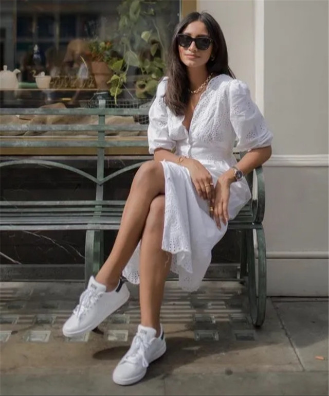 搭配百搭的小白鞋,整体的颜色不会觉得过于突兀,又可以有效地协调在一起,虽然说少了几分夸张的个性,但是这样经典耐看的造型却不易过时。