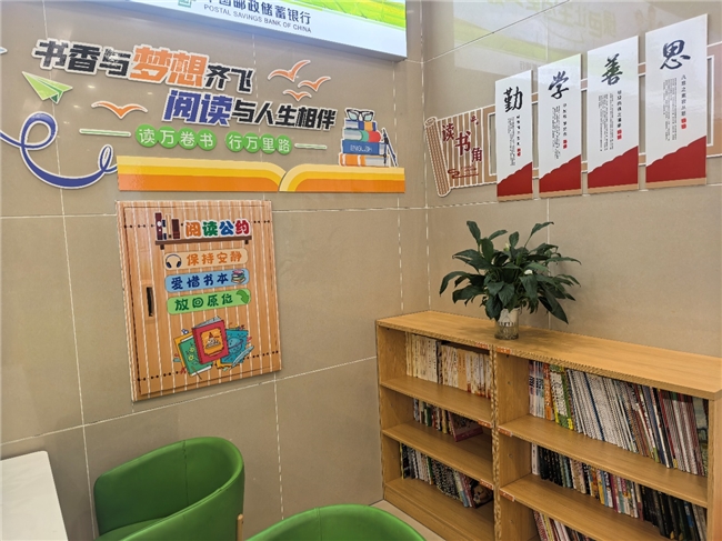 图1:邮储银行资中县支行打造“悦读驿站”客户图书角