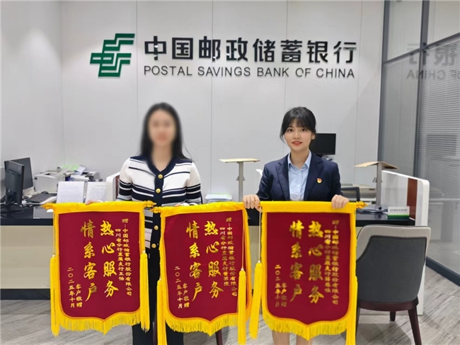 10月20日,在中国邮政储蓄银行四川省分行直属支行营业部(以下简称“直属支行营业部”),上演了一幕温暖人心的场景。客户高某将三面绣有“热心服务 情系客户”的锦旗交到网点工作人员手中,对她们在业务处理中展现出的高效、耐心与负责表达了高度赞扬和衷心感谢。