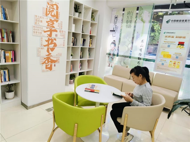 走进支行内部,开放式阅读专区让人眼前一亮:整齐排列的书架上,文学名著、历史传记、科普读物、儿童绘本等书籍应有尽有,覆盖全年龄段阅读需求。